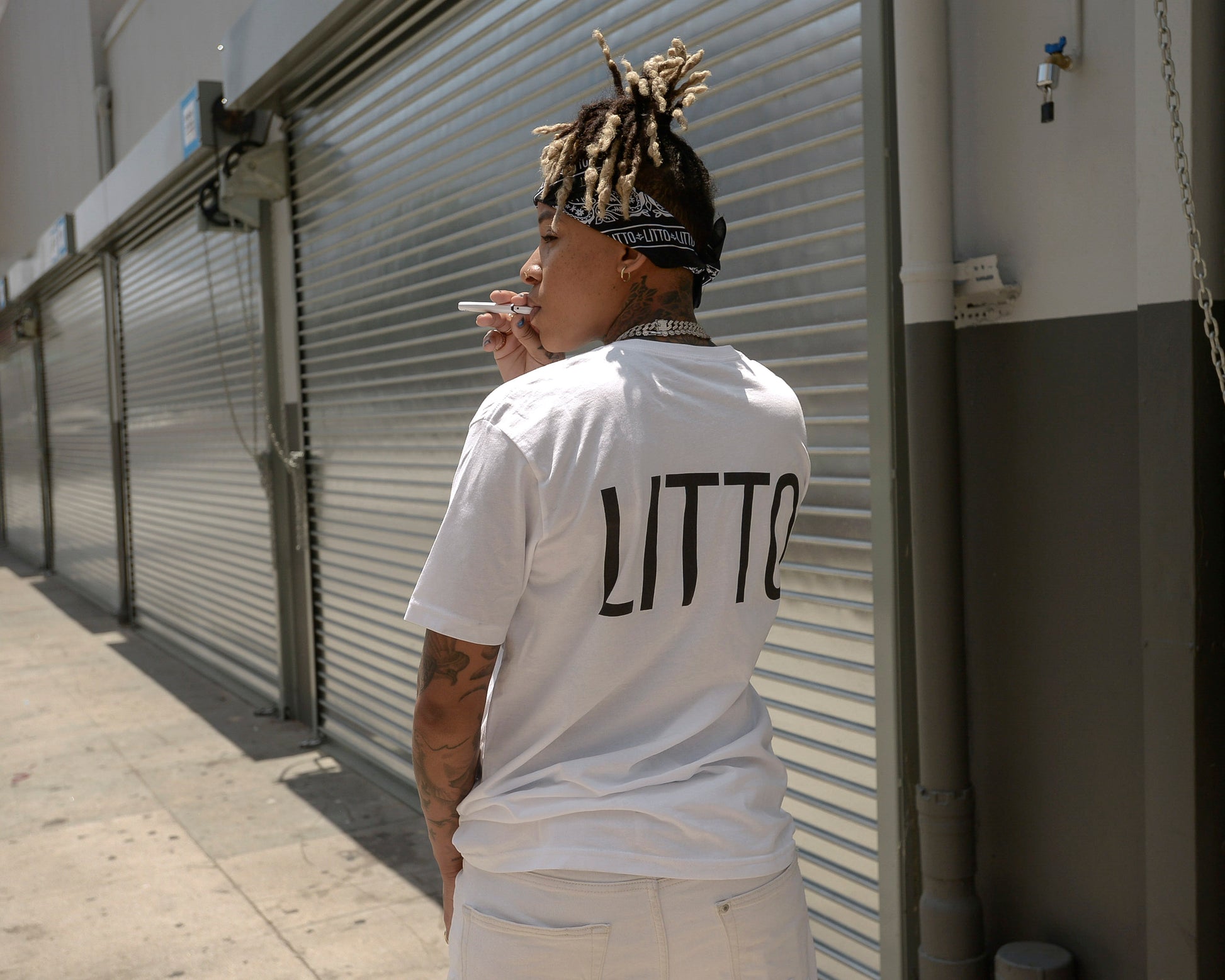 Add a LITTO bit of spice to any outfit with this bandana! Available in all black accompanied by white writing, this is the accessory you didn’t know you needed. Simple but enough to elevate your every day fit into something a little more.