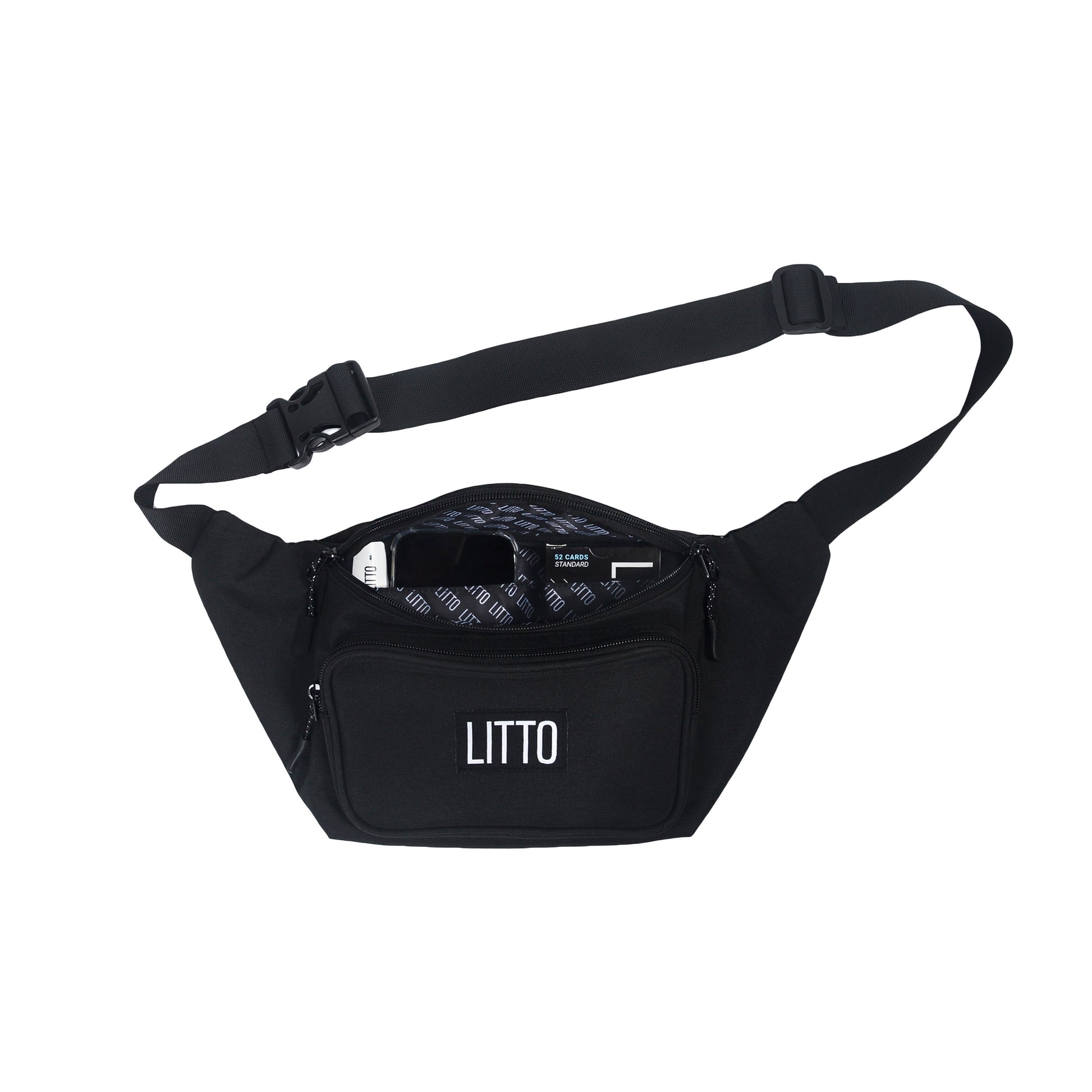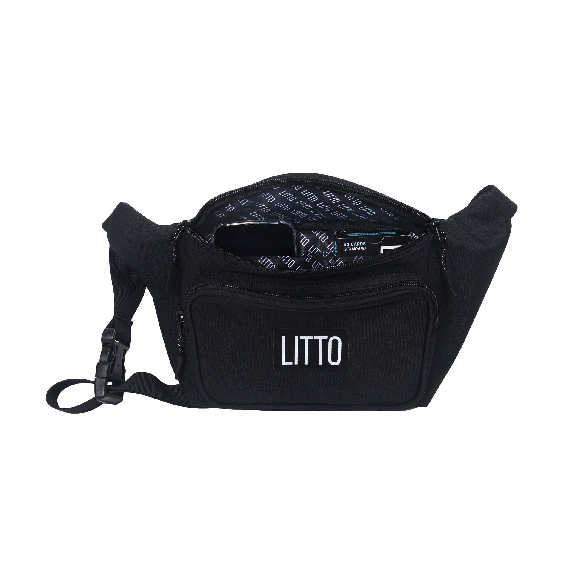 LITTO’s Essentials Belt Bag is a sleek, black fanny pack that offers three zippered pockets. The two front pockets and the back pocket, which are zippered, all feature the newly printed, custom LITTO design across the lining of the entire bag. There are two points that allow the strap to be adjustable, allowing the bag to rest exactly where and how each individual would prefer. LITTO’s black logo with minimal white lettering brings the bag together, ultimately creating a bag that’s ideal for day to day use. Grab the LITTO Essentials Belt Bag and keep any items, no matter how small, close!